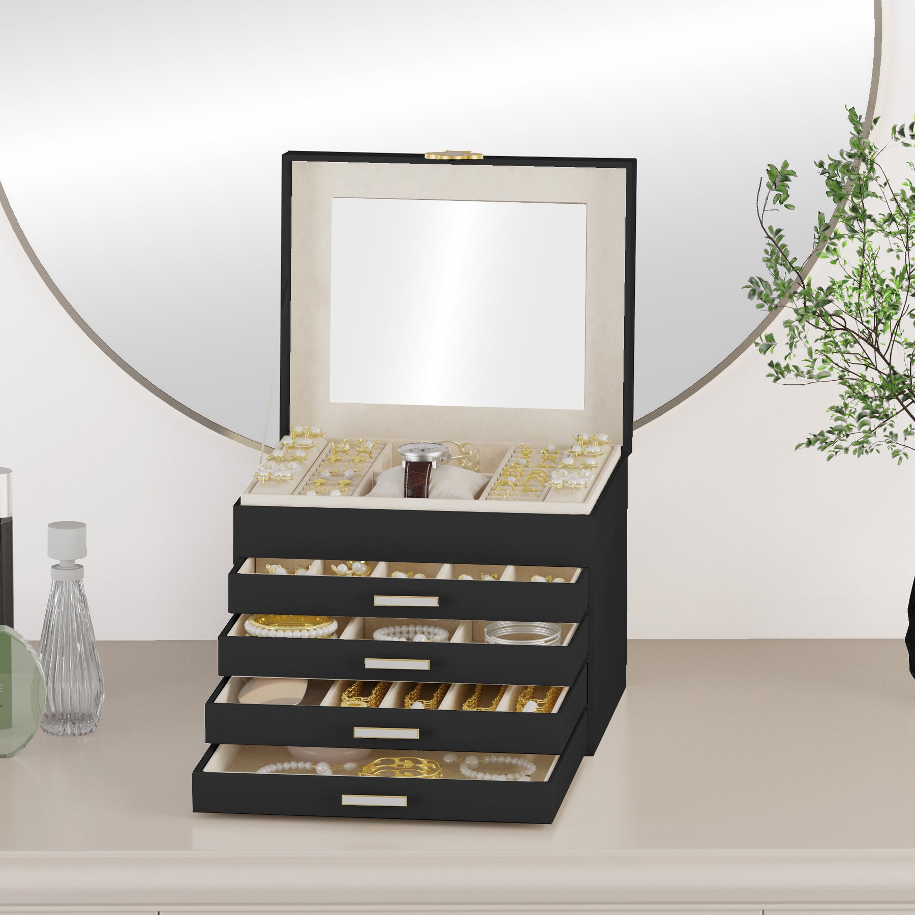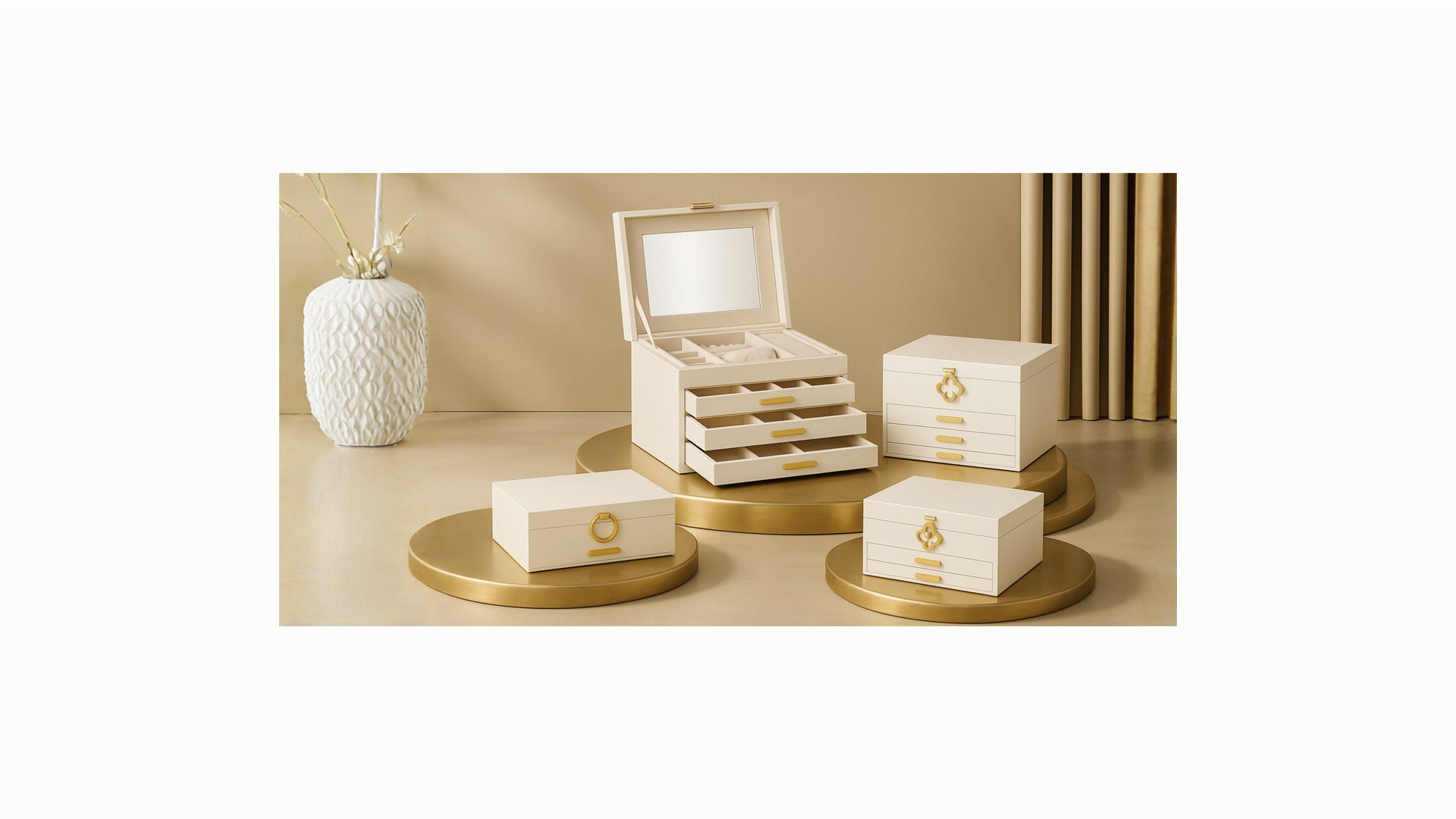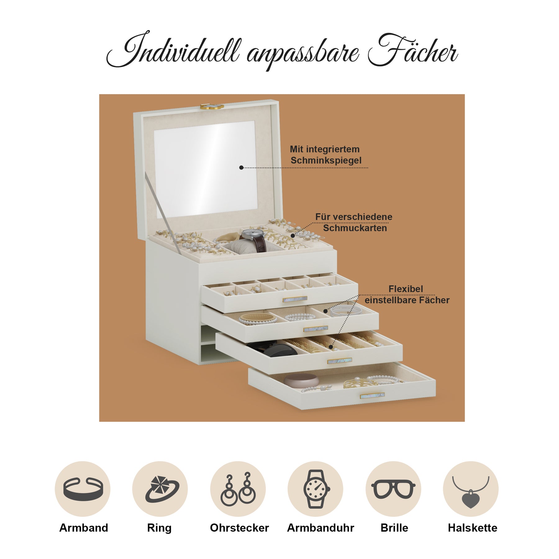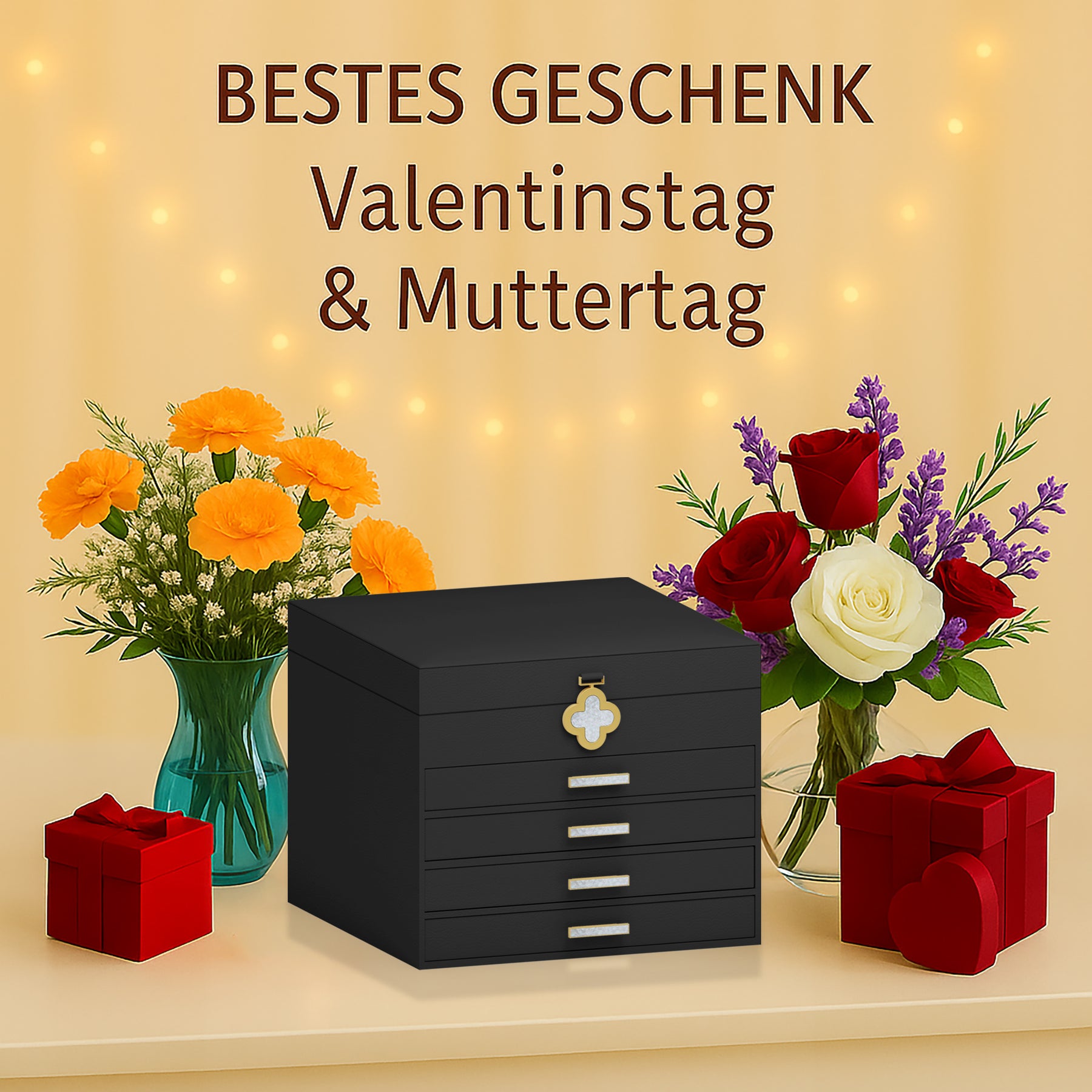 In einer warmen, festlichen Atmosphäre steht die dreistöckige Kinder-Musikschmuckbox elegant auf dem Tisch. Beim Öffnen erklingt eine sanfte Melodie, während das liebevoll gestaltete Design eine märchenhafte Stimmung schafft. Die drei Schubladen sorgen für eine ordentliche Aufbewahrung kleiner Schätze und machen die Box zu einem besonderen Geschenk für Kinder.